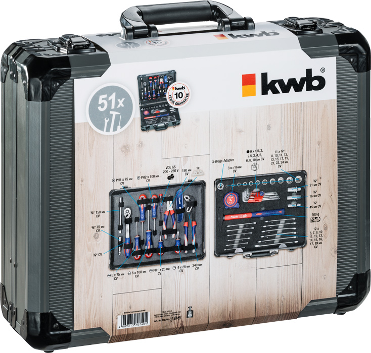 Le coffre à outils essentiel pour votre atelier avec ses 51 pièces d’outils à main. Coffre aluminium léger qui vous permettra de transporter sans soucis votre matériel.